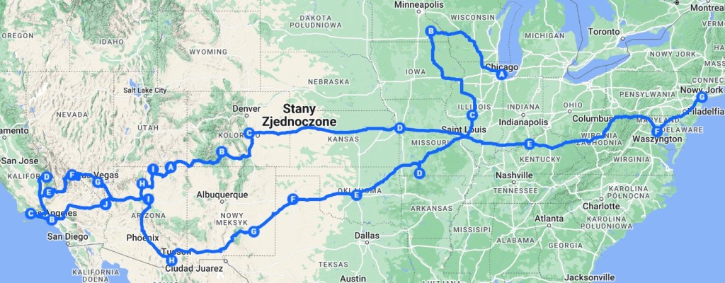 Plan podróży jest następujący…. z Chicago do Los Angeles route 66, a potem przez parki do Nowego Jorku i powrót z Chicago. Niektórzy pewnie powiedzą, nie możliwe….ja powiem parafrazując pewien cytat: Rzeczy niemożliwe dzieją się w naszym życiu codziennie, na cuda czasem trochę trzeba poczekać 🙂
