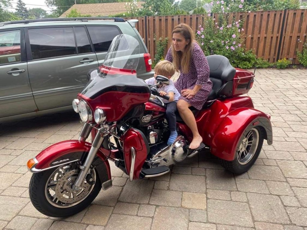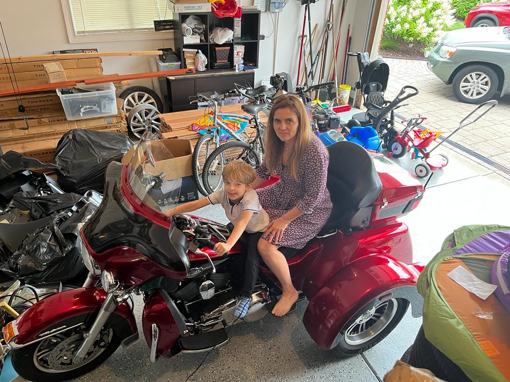 Niestety, często życie imigrantów sprowadza się tu do zatracenia się w pracy i walki o przetrwanie, a kwestia wiary ogranicza się do powierzchownej religijności i przyjścia do kościółka z potrzeby pobycia blisko rodaków. Na szczęście nie w każdym przypadku tak jest. Kiedy podzieliliśmy się z Księdzem o naszym kłopocie z bagażami, natychmiast na ogłoszeniach po Mszy zapytał się wiernych czy jest ktoś, kto może ma pożyczyć box na dach. Ku naszej uciesze zgłosiły się cztery osoby. Byliśmy uratowani, a mało tego trafiliśmy do cudownego małżeństwa Marty i Ryszarda, którzy nas ugościli pysznymi pączkami i pomogli zamontować box dachowy. Usłyszeliśmy ich historię życia i okazało się, że oni są jednym z tych małżeństw, które chciało więcej i to zarówno w sferze duchowej jak i materialnej. Mają piękny dom na przedmieściach Chicago i są blisko Boga przez posługę w swoich wspólnotach. Asia z dziećmi raczyła się kawką i rozmową z Martą, ja natomiast montowałem box z Ryszardem. Jasio zdążył przećwiczyć jazdę na Harley’u 🙂