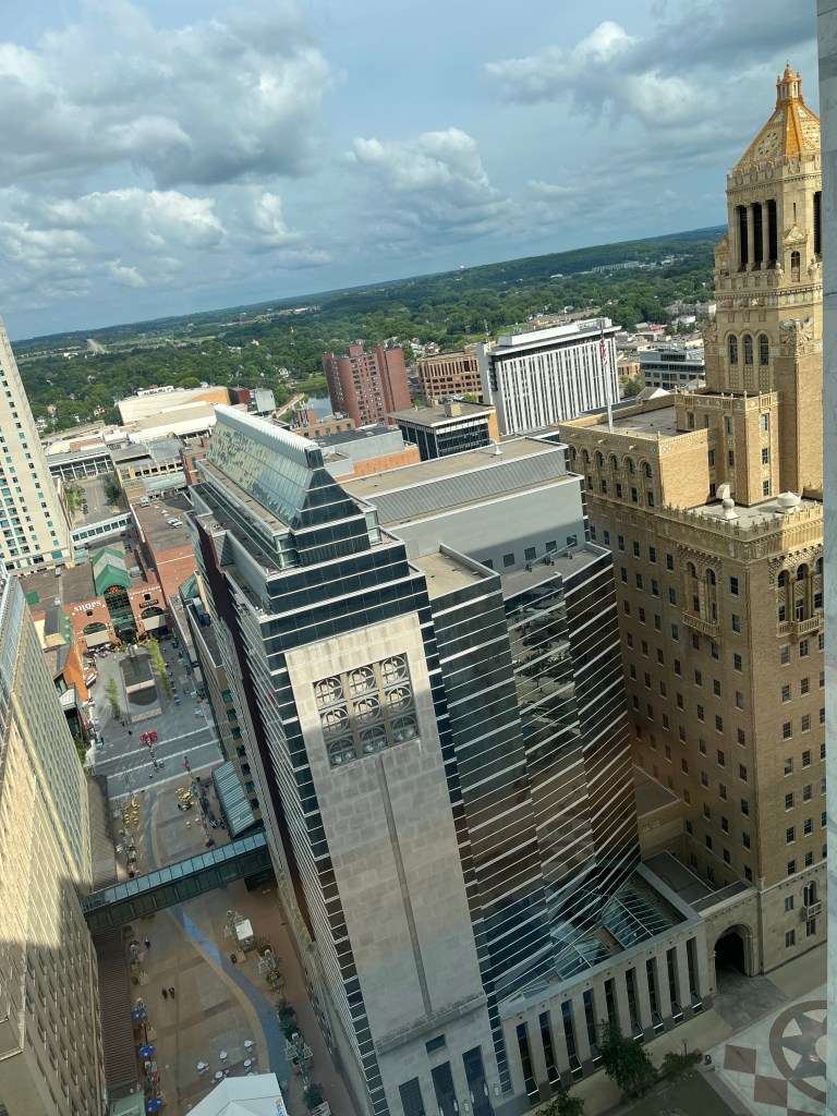 Kiedy dotarliśmy do Mayo Clinic, Michał zabrał nas na 19 piętro, z którego rozpościerała się piękna panorama miasta Rochester.