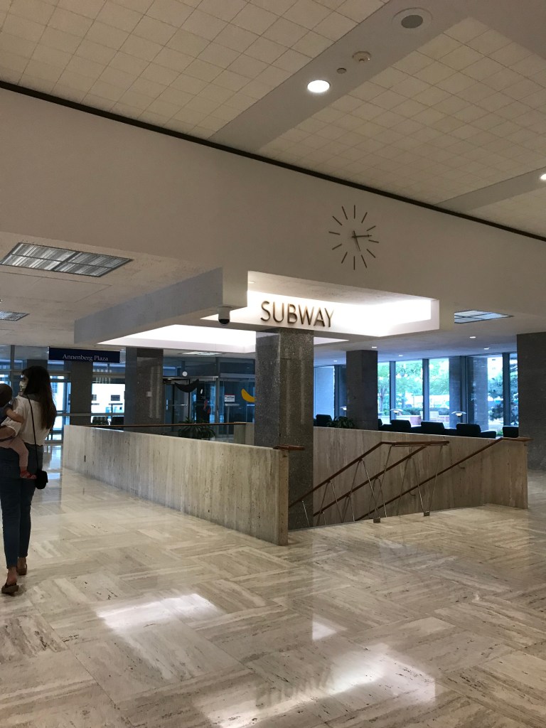 Po wizycie w straży udaliśmy się w kierunku szpitala, po drodze delektując się pysznym, truskawkowym smoothie kupionym w okolicznej kawiarni. I tu ku naszemu zaskoczeniu, okazało się, że nie będzie to standardowe przejście po chodniku wzdłuż ulicy, lecz ścieżkiami zwanymi: skywalk i subway. Pierwszy raz słyszałem o nich oglądając film dokumentalny o Vancouver i nie sądziłem, że kiedyś się nimi przejdę. Jest to system podziemnych i naziemnych korytarzy, które łączą większość budynków w centrum miasta. Zbudowane zostały one z powodu bardzo mroźnych zim i temperatur dochodzących do -40’C. Dziwne uczucie kiedy idziesz kilkanaście minut cały czas nad ziemią, przechodząc między budynkami, nie wychodząc na powietrze.