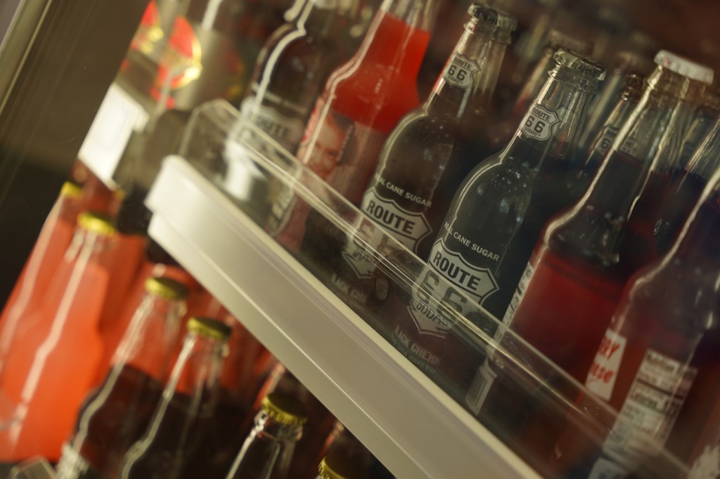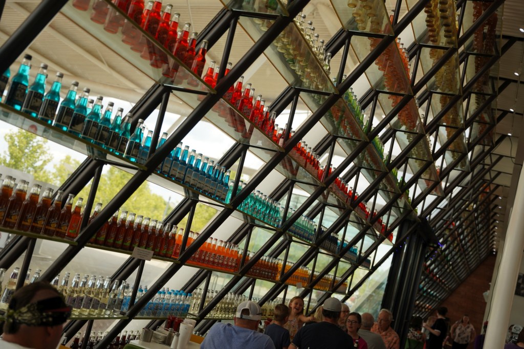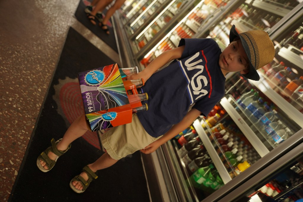Po wejściu do środka przeżyliśmy mały szok, kiedy okazało się, że wszystkie ściany owej stacji benzynowej wyłożone są butelkami szklanymi wypełnionymi oranżadą w kilkuset smakach. Miedzy innymi można było znaleźć oranżadę o smaku piwa lub bekonu czy czarnej wiśni. Zaopatrzyliśmy się w kilka butelek.