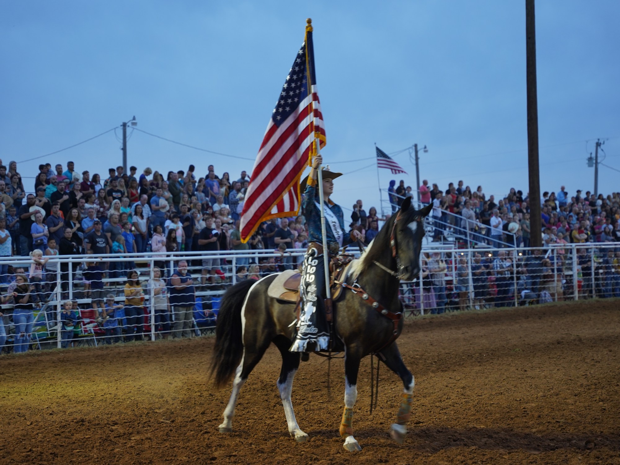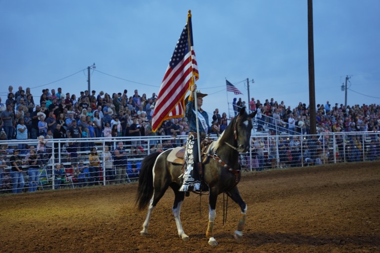 Nie ma chyba nic bardziej amerykańskiego w Ameryce jeśli chodzi o wydarzenia jak Rodeo. Gdy dojechaliśmy na miejsce był już tłum ludzi i wszystkie miejsca pozajmowane. Całe wydarzenie rozpoczęło się od kilkuminutowej modlitwy oraz odśpiewaniu hymnu narodowego.