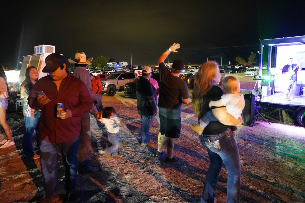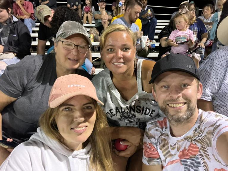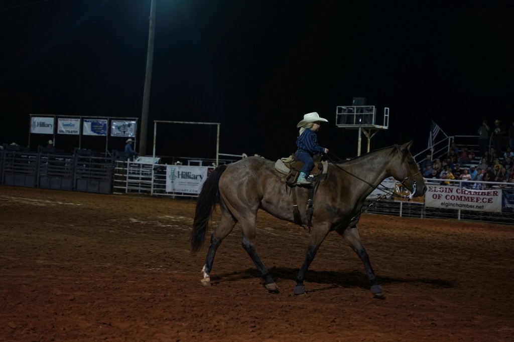 W trakcie wieczoru odbył się szereg konkurencji i zawodów jak łapanie byczka, ujeżdżanie dzikich koni, jazda slalomem czy ujeżdżanie owiec dla najmłodszych. W trakcie grał zespół country a na około było pełno food trucków i straganów z bibelotami, pamiątkami oraz amunicją 🙂 W USA a szczególnie w południowych stanach posiadanie broni jest tak powszechne, że amunicje można kupić w Walmar’cie (takim amerykańskim TESCO). Julii udało się nawet złapać pamiątkową koszulkę podczas jednej konkurencji z napisem GOD , COUNTRY, RODEO