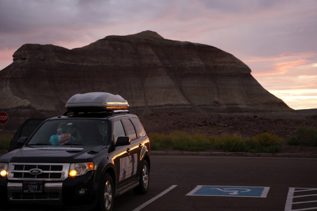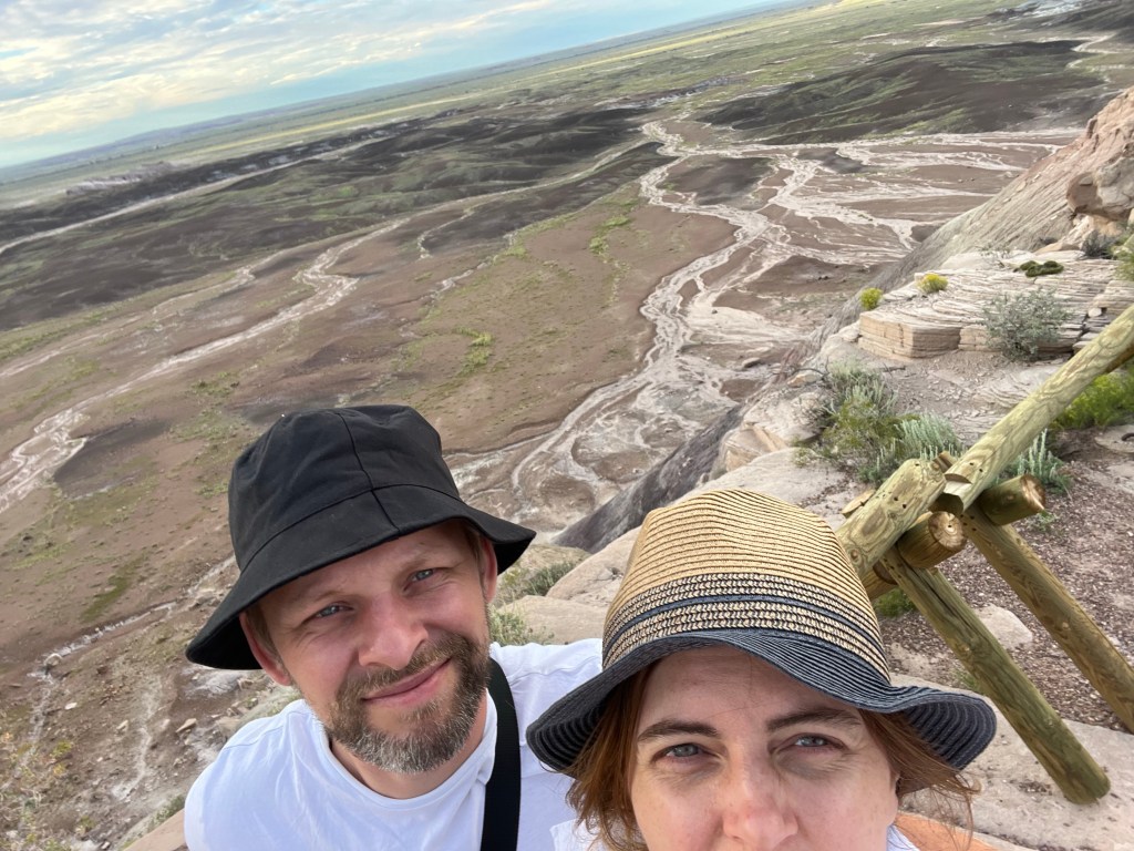 Późnym popołudniem dotarliśmy do niesamowitego miejsca – Petrified Forest National Park. Byliśmy troche smutni, że została nam godzinka na zwiedzanie, lecz zapomnieliśmy, że przekroczyliśmy kolejną strefę czasową w USA i zyskaliśmy kolejną godzinkę. Taki bonus od Boga, żeby zachwycić się tym co stworzył ! A krajobrazy rzeczywiście zapierają dech w piersiach…
