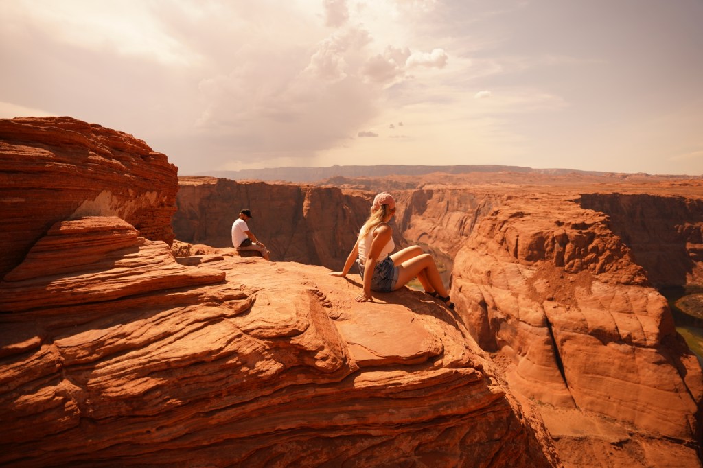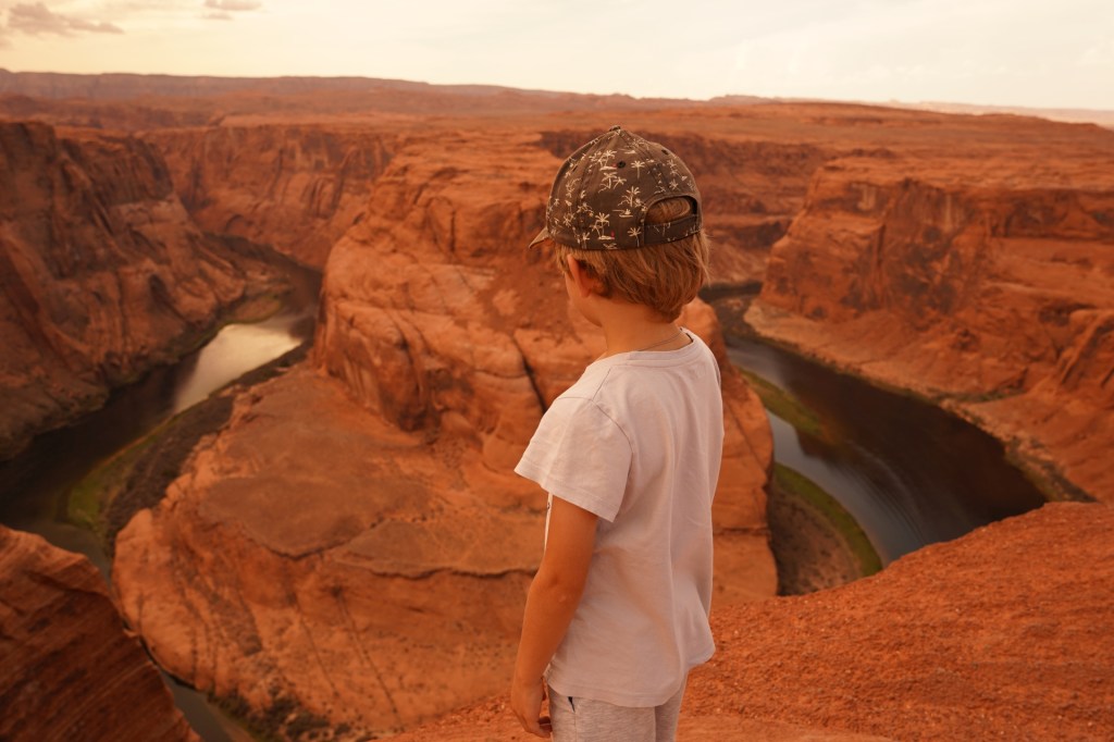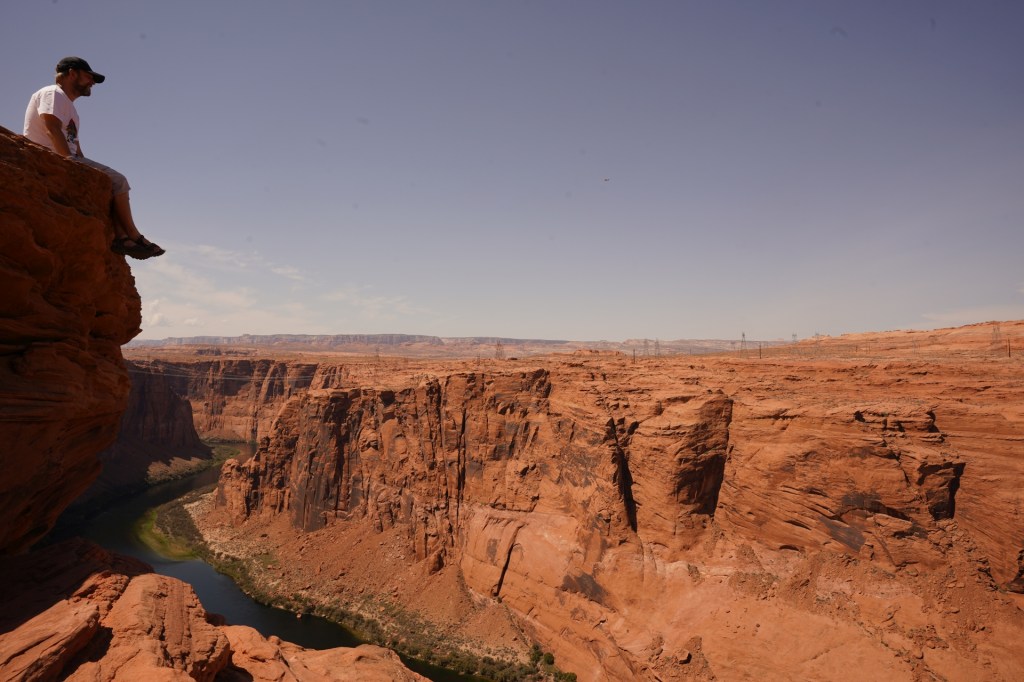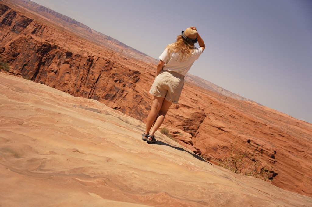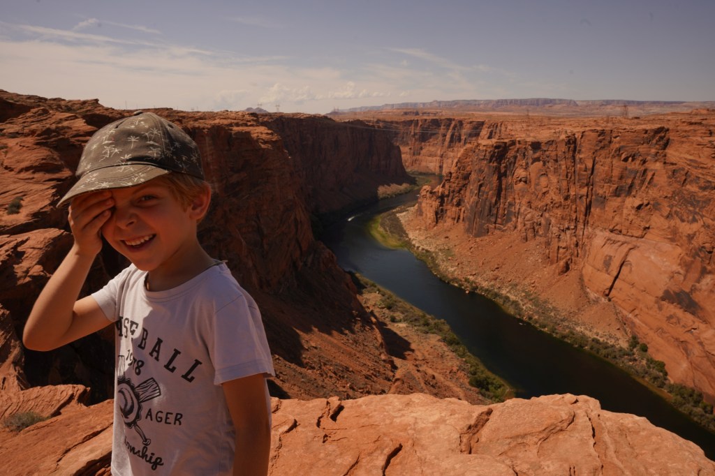 Kilka mil dalej zatrzymaliśmy się przy jednym z bardziej znanych punktów widokowych a zarazem w miejscu gdzie swój początek ma Wielki Kanion czyli Horseshoe Bend czyli meander rzeki w kształcie końskiej podkowy. W połączeniu z wyjątkowymi pułkami skalnymi zwisającymi nad samym kanionem daje to piorunujące wrażenie!!!