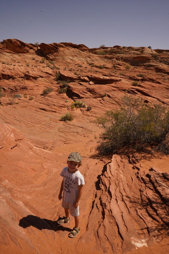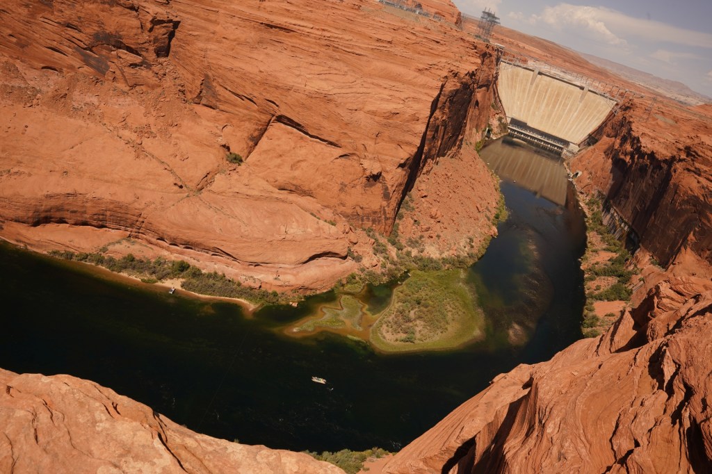 Zwinęliśmy nasz obóz i ruszyliśmy w dalszą podróż. Przekroczyliśmy granicę Arizony i Utah a co za tym idzie również strefę czasową z pacyficznej na górską. Pierwszym punktem naszej podróży była zapora na rzece Kolorado, dzięki której powstało wielkie jezioro Powell. Zapora ta jest jedną z kilkunastu powstałych na tej rzece. Niestety rzeka Kolorado została tak zurbanizowana a woda z niej zagrabiona na potrzeby miast, że do zatoki Kalifornijskiej, gdzie powinna mieć swoje ujście, wpływa tylko malutka strużka.