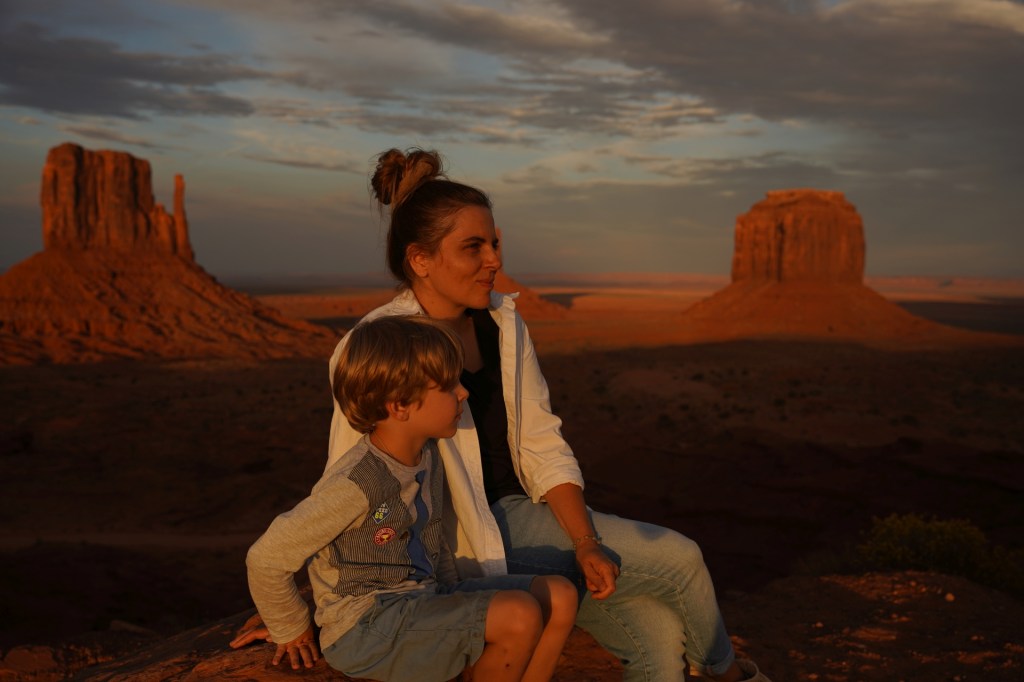 Do celu dojechaliśmy ok. 19.00 czyli krótko przed zachodem słońca, a na tym nam najbardziej zależało. Mogliśmy oglądać te zjawiskowe formacje skalne w złotych promieniach słonecznych. Niesamowite wrażenie robią olbrzymie skały wyrastające pośród równin pustynnych. Miejsce to nazywa się Monument Valley, czyli dolina monumentów, które wsławiło się poprzez nakręconą niezliczoną ilośc westernów w tym rejonie.