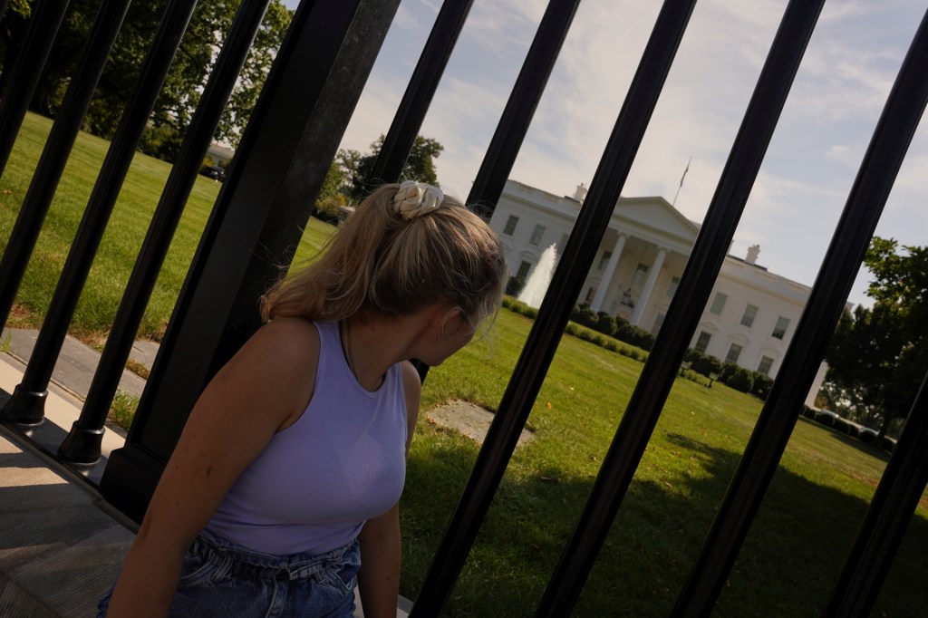 Kiedy dotarliśmy na miejsce zobaczyliśmy niezły festyn. Kilkadziesiąt osób robiących sobie zdjęcia pośród nich jakiś dwóch dziwnych kolesi w transie kłócących się o jakiś kijek, obok ktoś gra na gitarze elektrycznej, po środku tańczący ewangelizator śpiewający pieśni o miłości Boga, kilku policjantów z secret service, dalej jakiś namiot z pikietującymi ludźmi, a obok tego kilka osób palących trawkę. Mydło i powidło, a pośrodku najbardziej strzeżony dom świata.