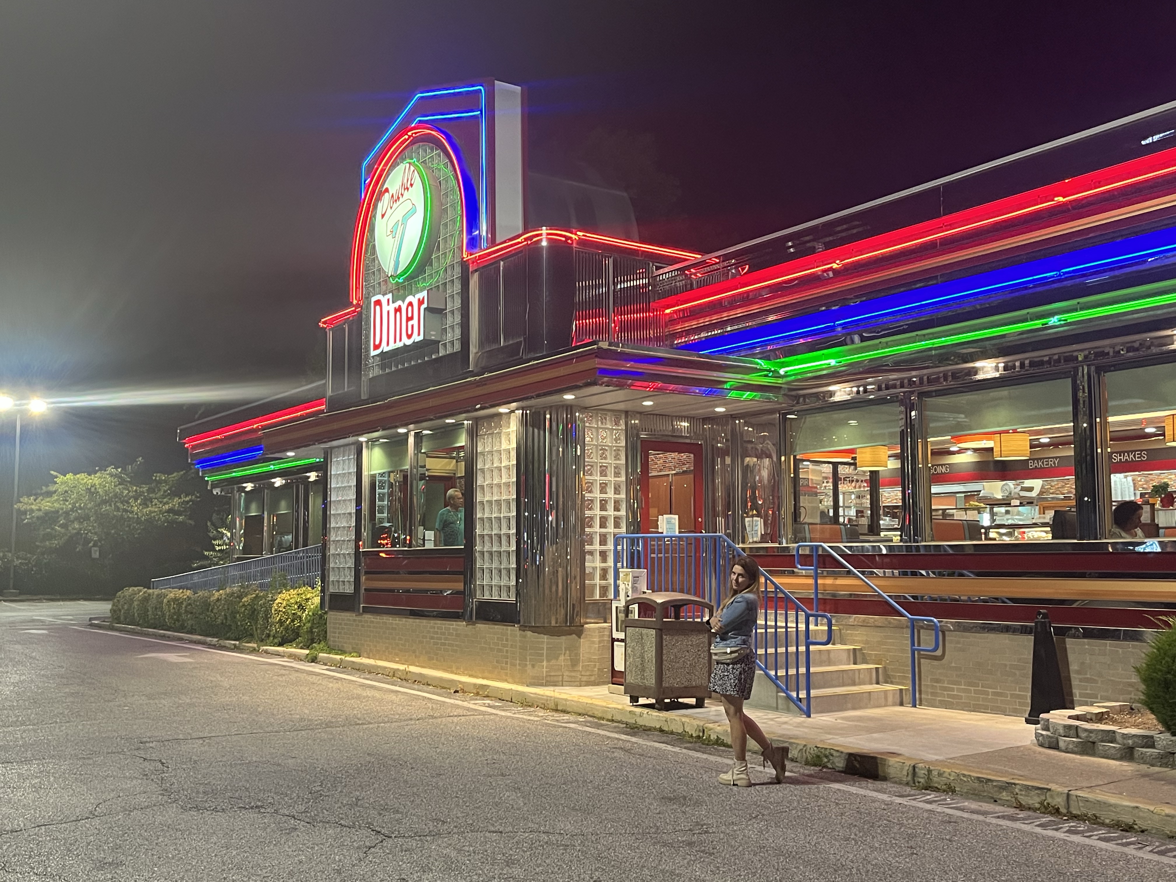 Jedliśmy również kolację w typowej amerykańskiej jadłodajni, gdzie prawdziwy kelner z powołania umilał nam czas za każdym razem gdy podchodził do stolika 🙂