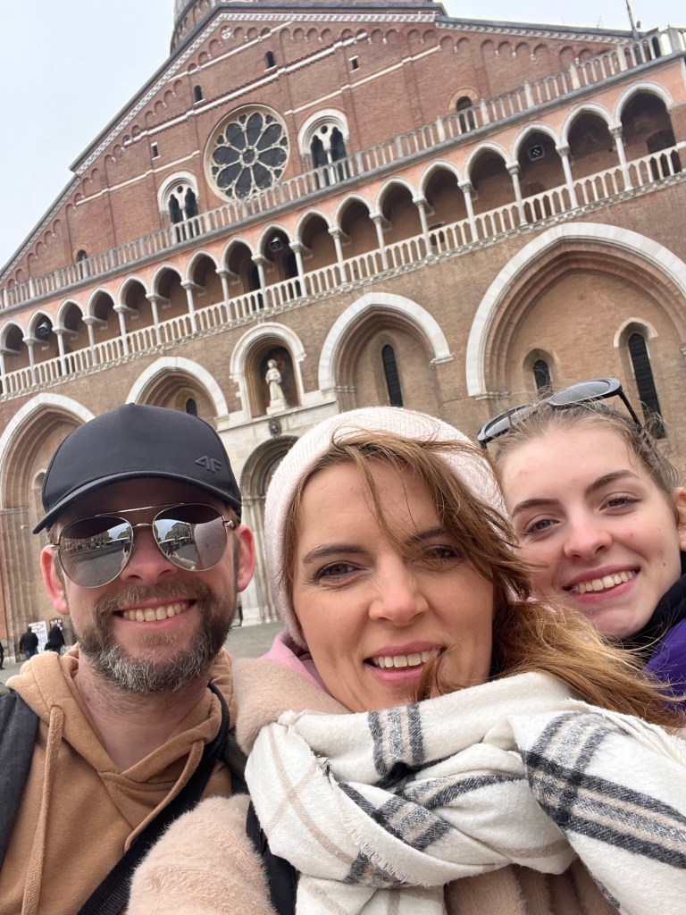 Mimo zapowiadanych deszczów poranek przywitał nas słoneczkiem. Po śniadaniu udaliśmy się więc do Padwy, gdzie chcieliśmy zgłębić historię św Antoniego. Po drodze zatrzymaliśmy się w małej urokliwej miejscowości Arqua Petrarca by zobaczyć jak wyglądają włoskie cmentarze. Różnią się od naszych znacznie, gdyż mało kto jest tu chowany do ziemi, w zamian za to są budowane pomniki w górę wraz z miejscem by wsunąć trumnę.